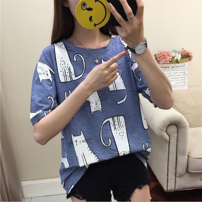 Damen T-Shirt mit Katzenmotiv. Damen T-Shirt mit Katzenmotiv