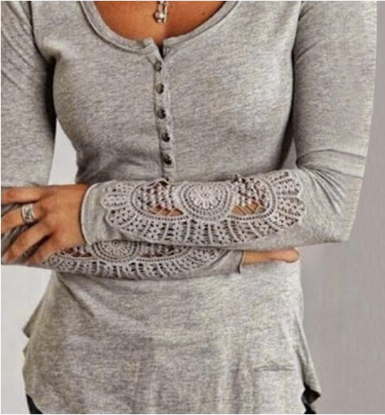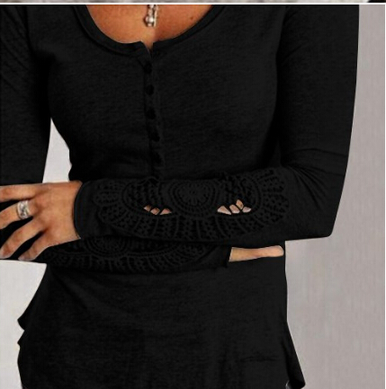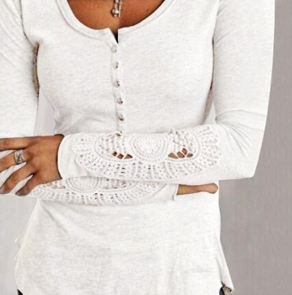 Damen T-Shirt mit langen Ärmeln, Spitze und Knöpfen