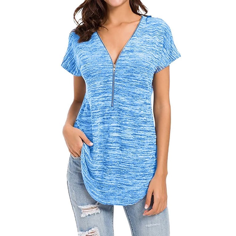 Damen T-Shirt mit meliertem Design in lockerer Passform. Das Shirt hat kurze Ärmel und einen V-Ausschnitt mit dekorativem Reißverschluss. Angenehmes, luftiges Material. Erhältlich in mehreren Farbvarianten.