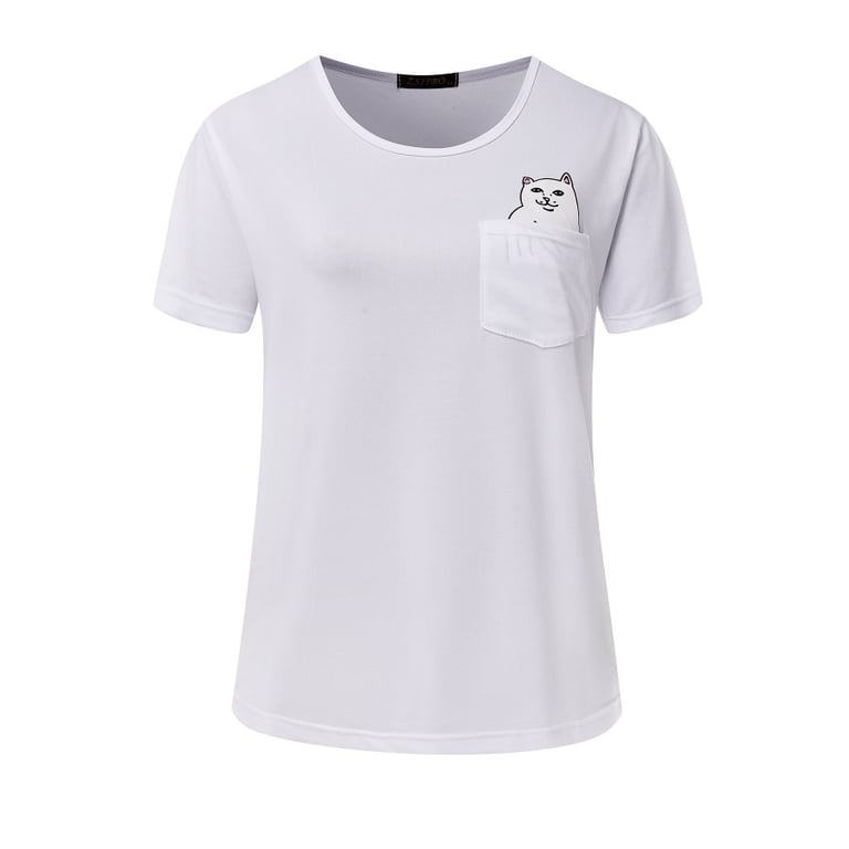 Damen T-Shirt mit kurzen Ärmeln und rundem Ausschnitt. Brusttasche mit Druck. Lockere Passform. Mehrere Farbvarianten.