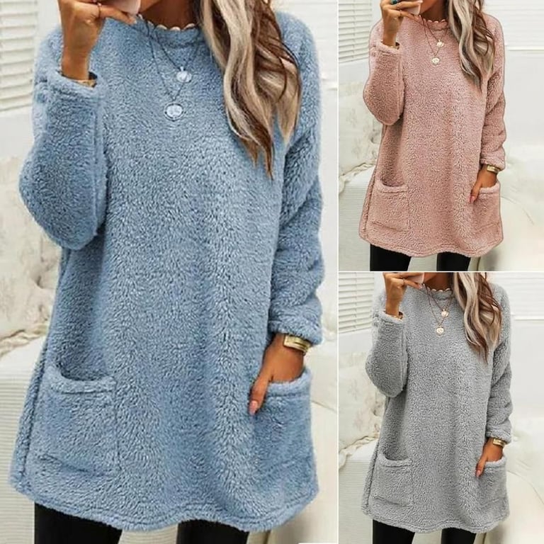 Damen Trend Plüsch T-Shirt mit langen Ärmeln Esther