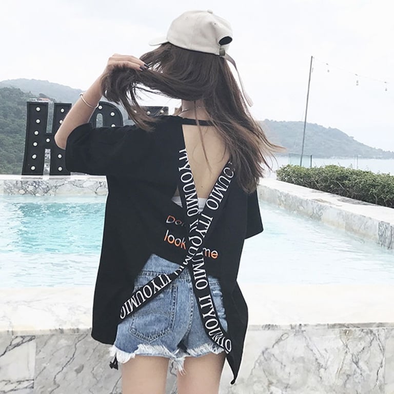 Damen Trend T-Shirt mit kurzen Ärmeln und freiem Rücken