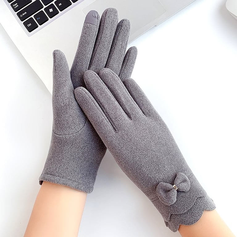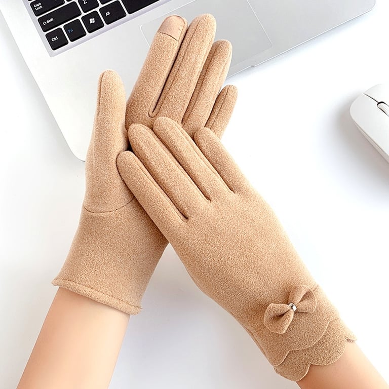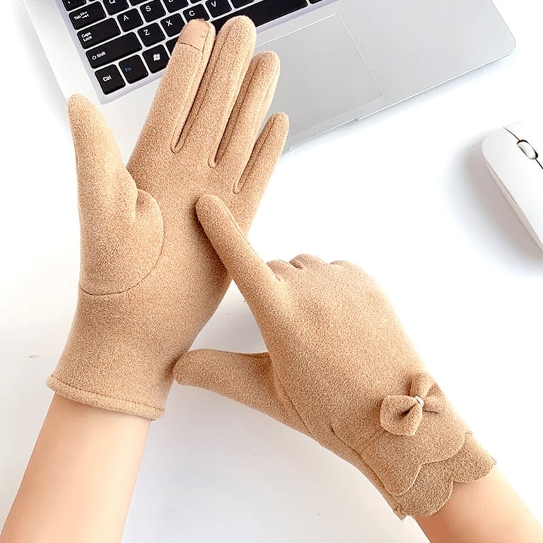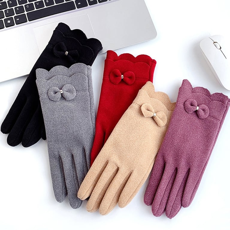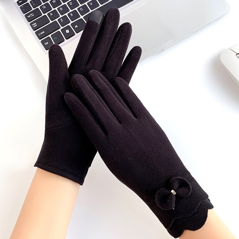 Damen Vintage-Handschuhe mit warmem Futter und dekorativem Schleifenband.