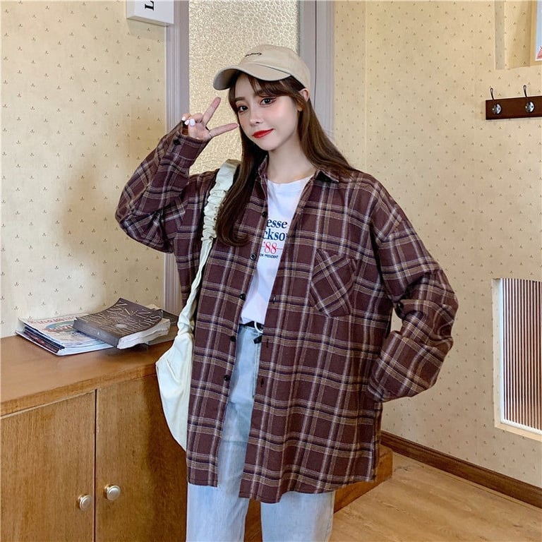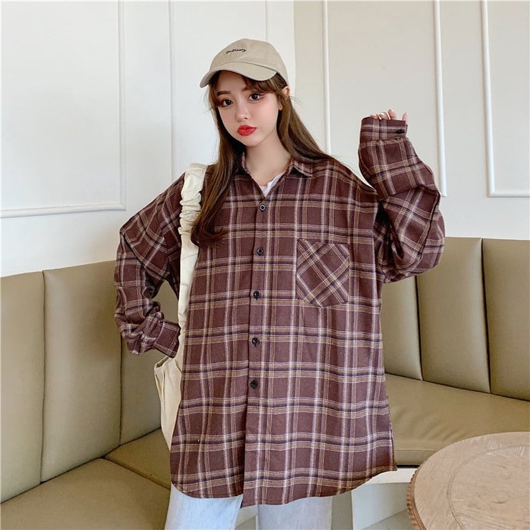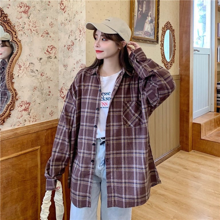 Damen Vintage Karo Hemd im Oversized Schnitt