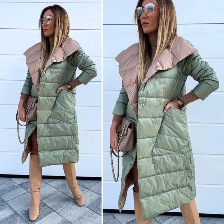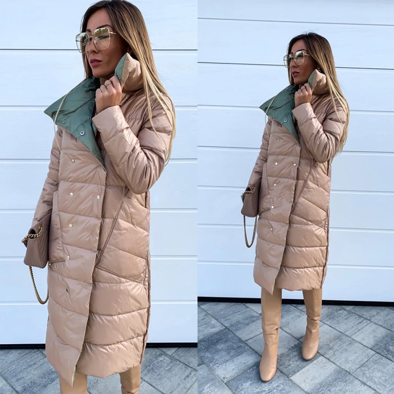 Stylischer langer Mantel für kaltes Wetter in beidseitigem Design. Attraktive Farben für jeden Tag, einfach auswählen.