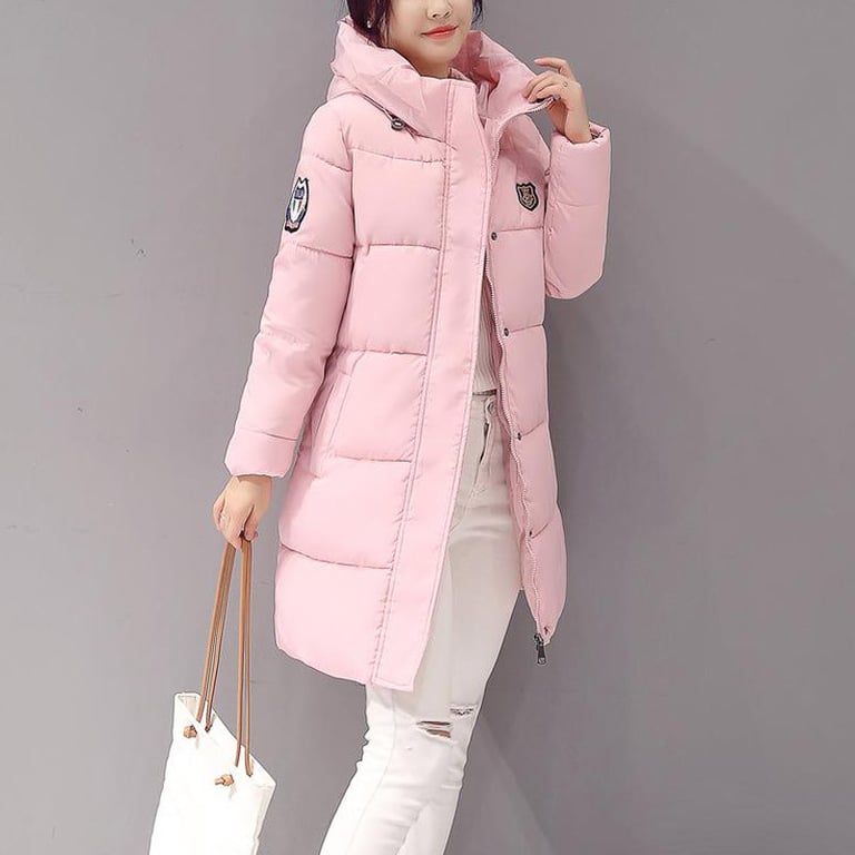 Langarmige wattierte Steppwinterjacke mit Kapuze und Reißverschluss. Auf der Brust und am Ärmel mit Aufnähern versehen. Erhältlich in sechs Farbvarianten.