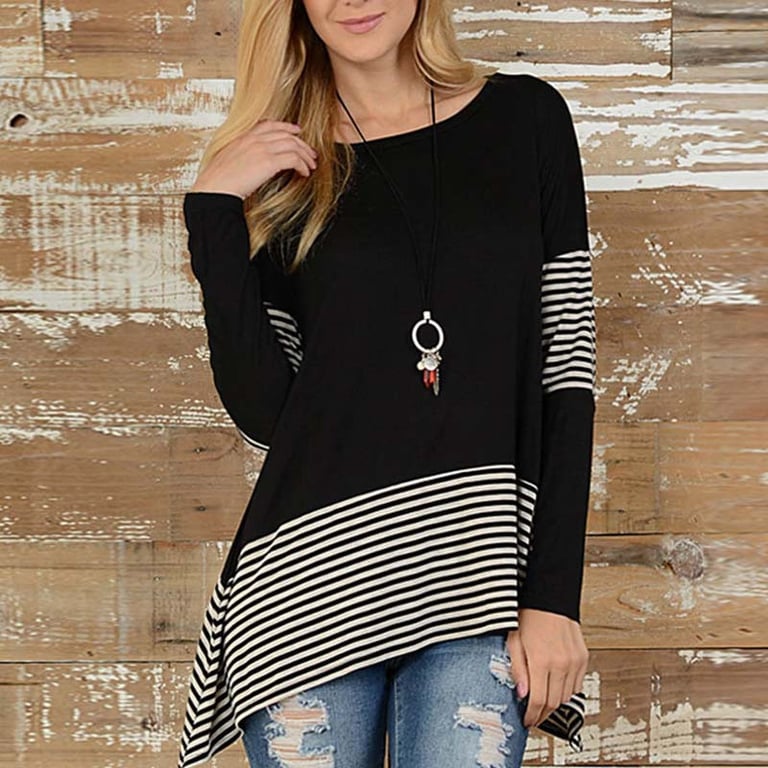 Angenehme Bluse mit langen Ärmeln. Klassische Farben in Kombination mit Streifen runden das Gesamtbild angenehm ab.