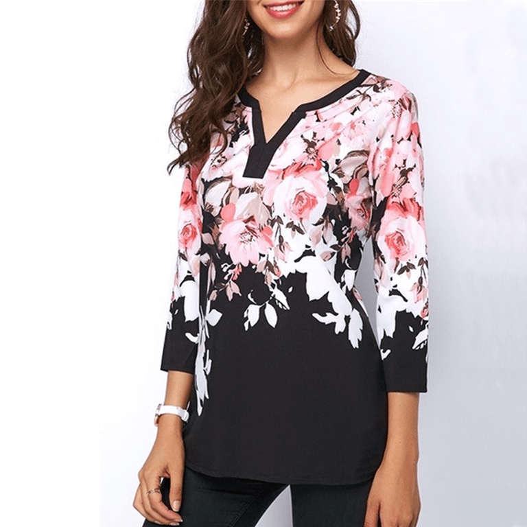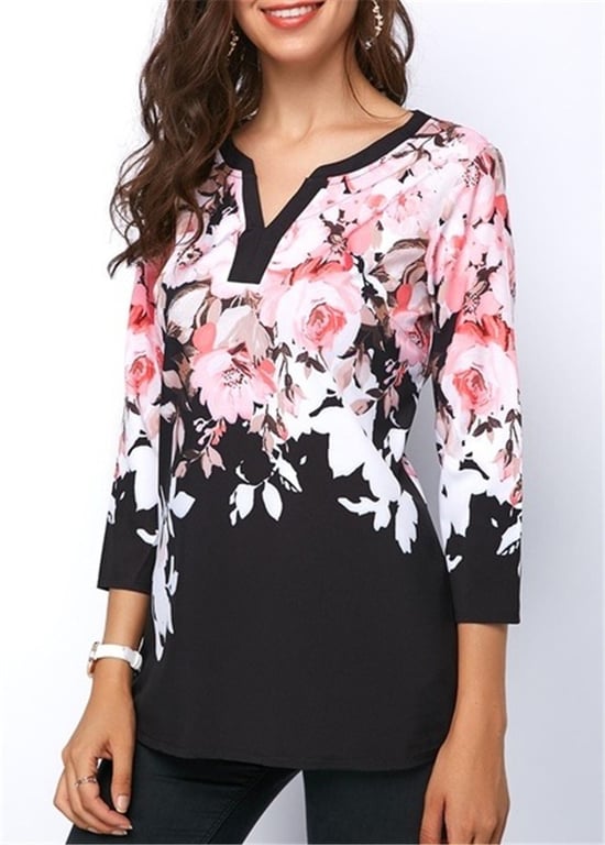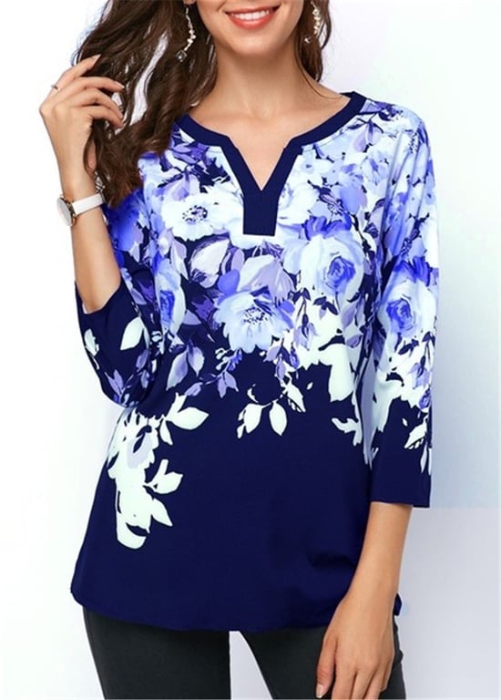 Die Bluse mit V-Ausschnitt und Blumenmuster zaubert den Männern ein Lächeln ins Gesicht.