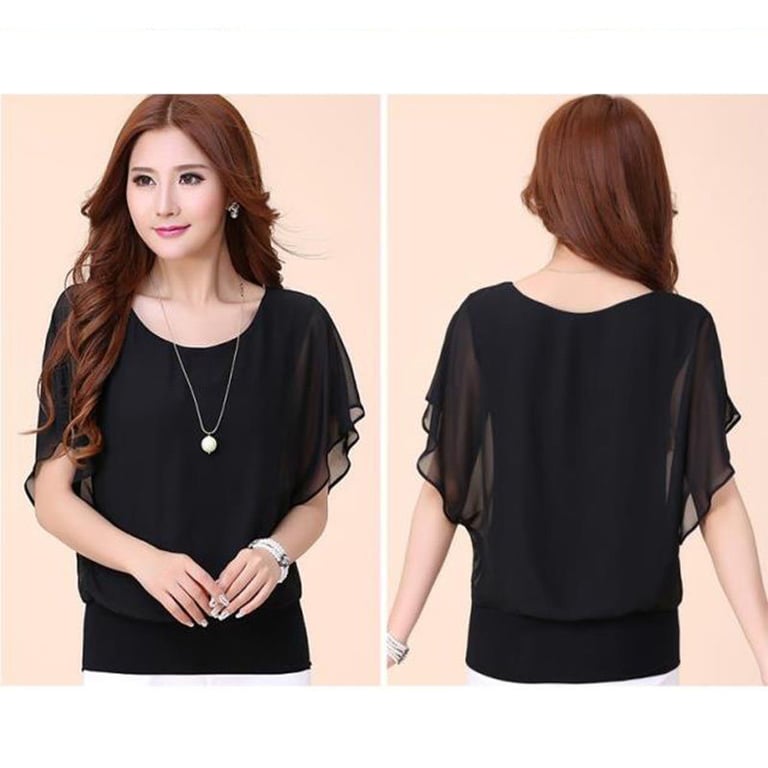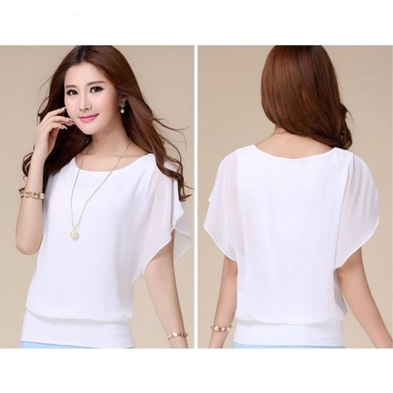 Damen elegante Bluse mit Fledermausärmeln und rundem Ausschnitt.