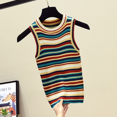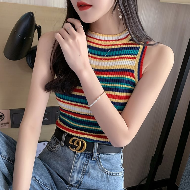 Damenfarbiger gestreifter Crop Top