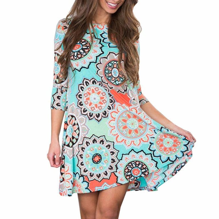 Wunderschönes Kleid mit einem angenehmen Muster, das trotz seiner Kürze sehr elegant ist. Sie können es für viele Anlässe während der gesamten Saison nutzen, zögern Sie also nicht und wählen Sie aus!