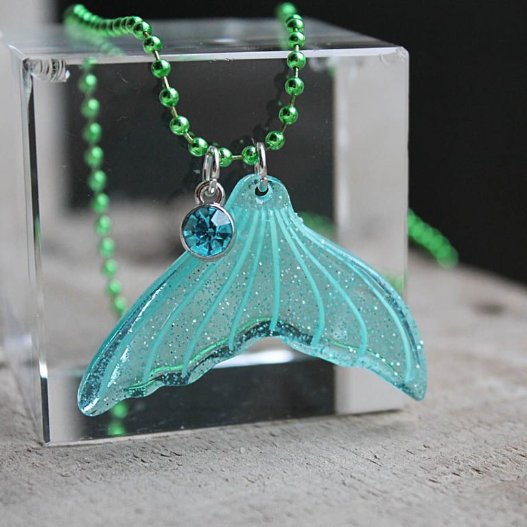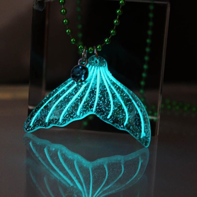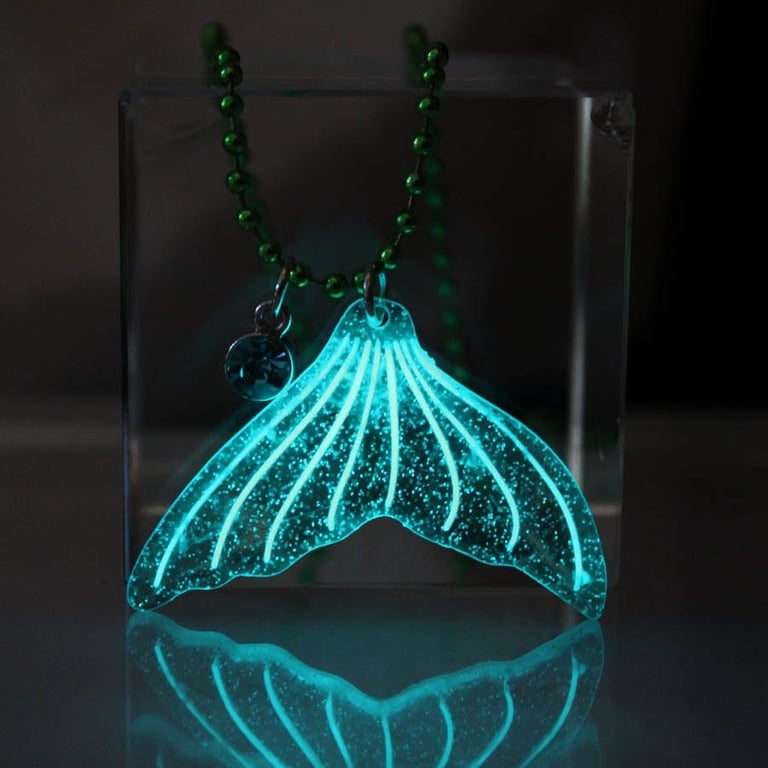 Damenhalskette mit leuchtendem Amulett in Form einer Flosse