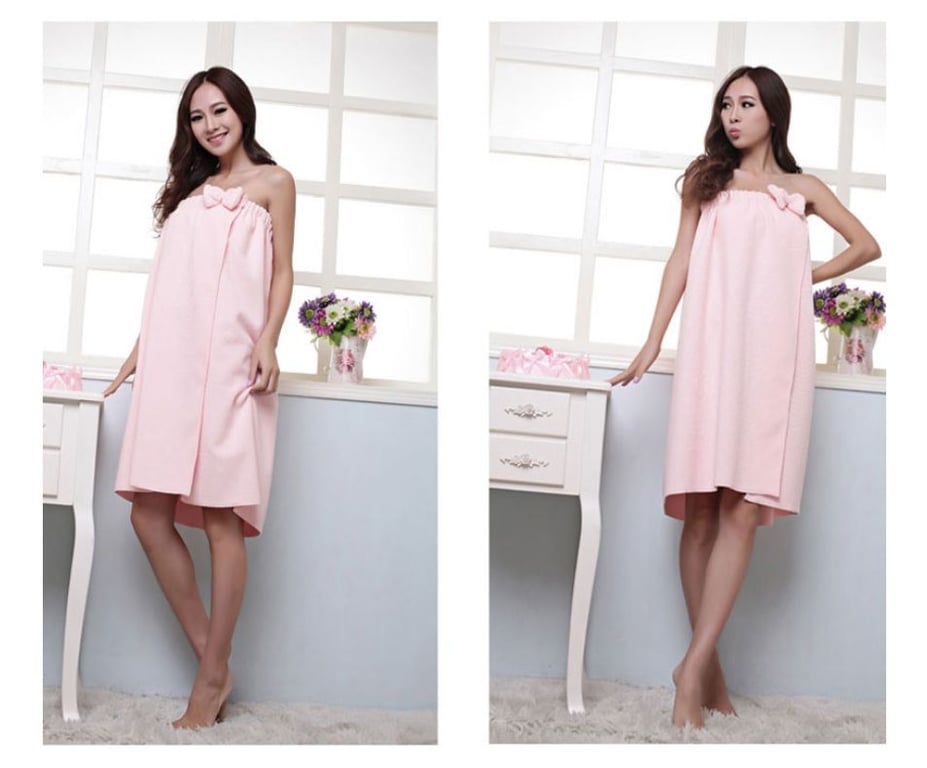 Das Handtuch ist faltbar, leicht, saugfähig und mit einer Schleife verziert. Mit einem Klettverschluss zur Befestigung des Handtuchs am Körper.