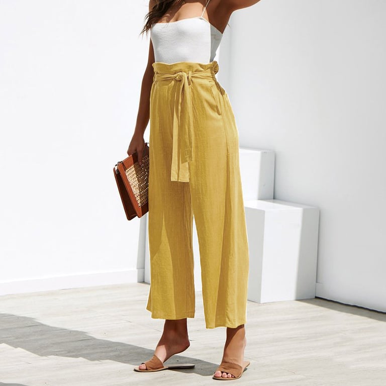 Damenweite Hose mit hohem Bund. Leichter, luftiger Stoff. Bindegürtel in der Taille. In mehreren Farbvarianten erhältlich.