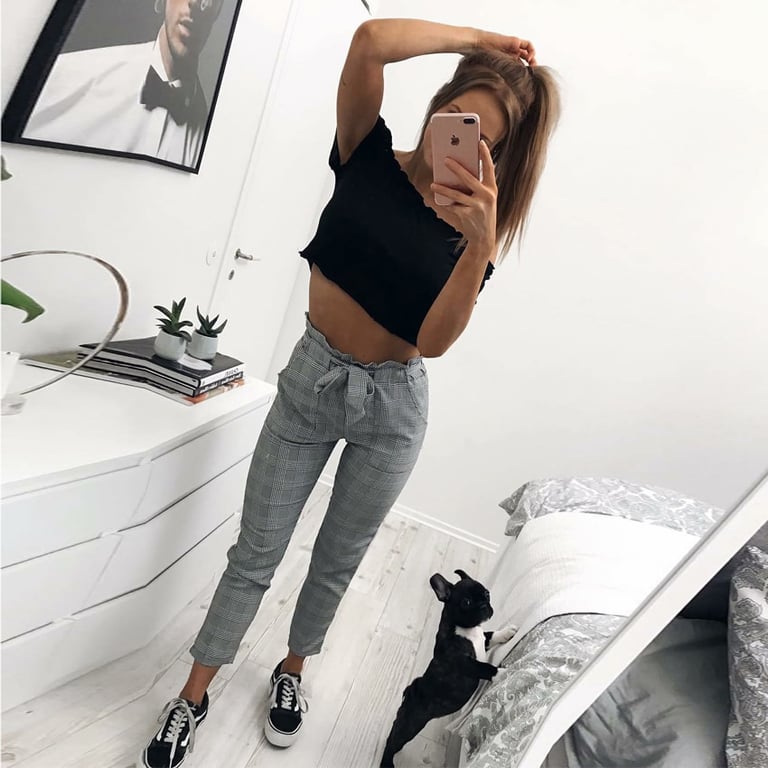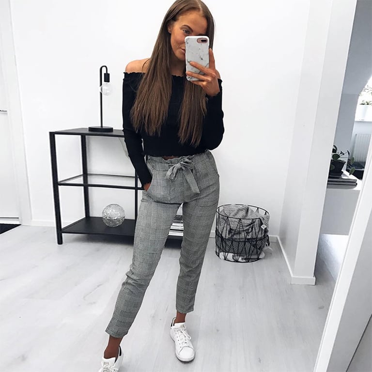 Die wunderschönen Damenhosen werden Sie mit ihrem einzigartigen Stil begeistern. Die Hose wird durch einen farbigen Gürtel geschmückt, der zu einer Schleife gebunden werden kann.