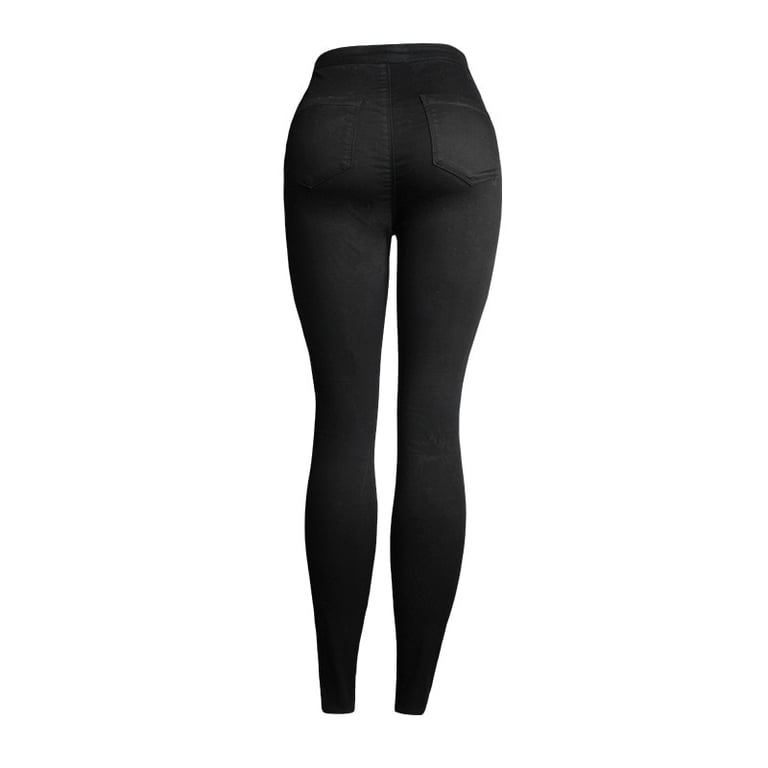 Jeans für Frauen in schwarzer Ausführung mit dem Motiv einer schönen Rose, die Ihr linkes Bein schmückt.