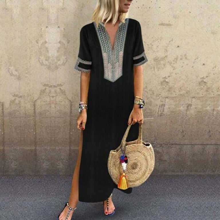 Es sind Größen von M bis XL erhältlich. Probieren Sie das schöne Kleid mit Schlitz, in dem Sie sich auch bei höheren Temperaturen wohlfühlen werden. Dieses Kleid lässt sich gut sowohl mit Sandalen als auch mit Ballerinas kombinieren. Bei uns ist der Versand immer kostenlos, sodass Sie bequem auswählen können!