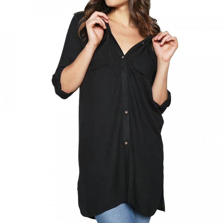 Damenbluse im lockeren Schnitt mit Knopfverschluss. Die Bluse hat lange Ärmel und einen Kragen. Erhältlich in mehreren Farbvarianten.