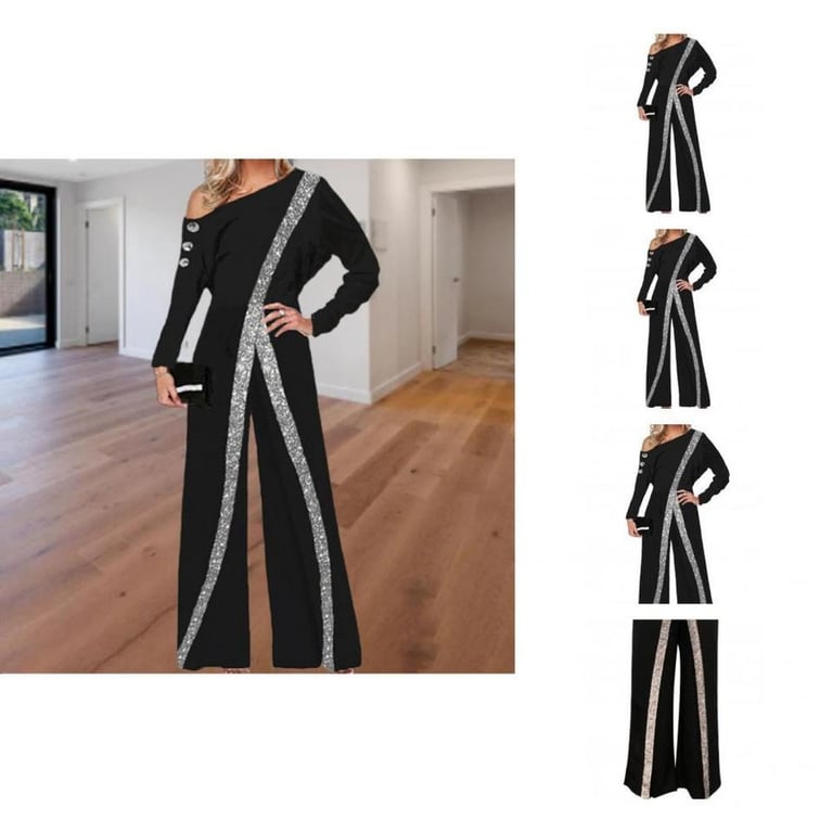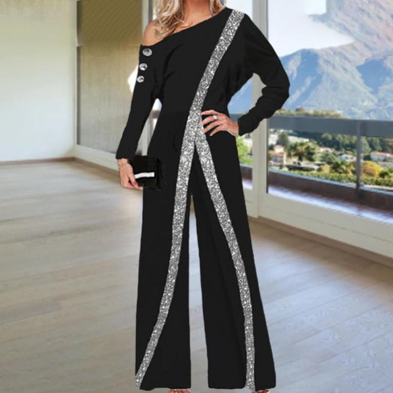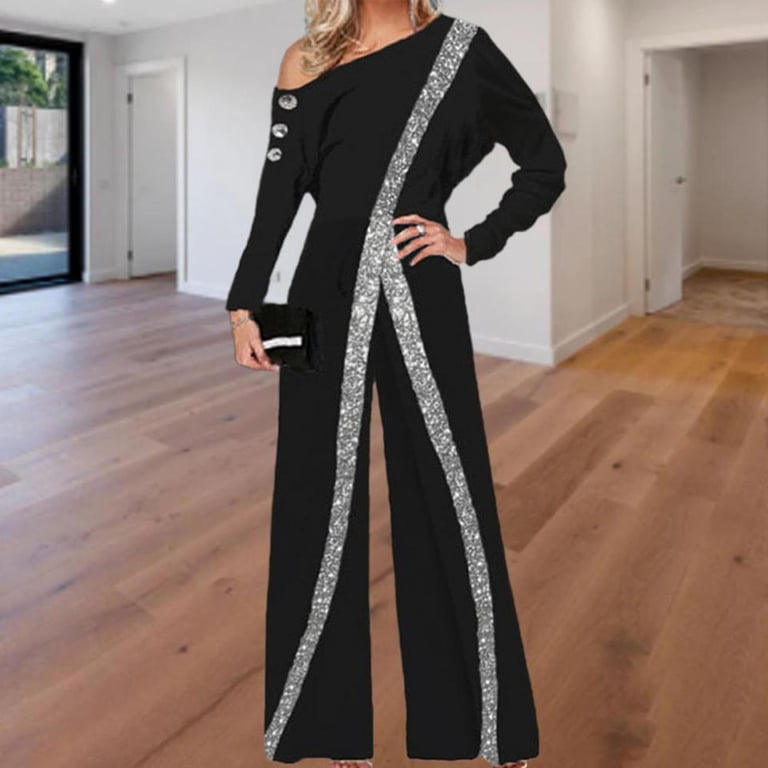 Damenmode eleganter Overall mit glitzerndem Detail und schulterfreiem Design