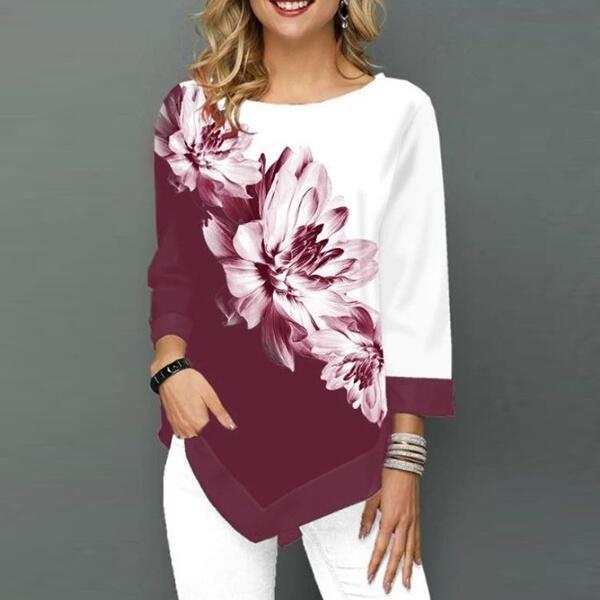 Damenmodebluse mit langen Ärmeln und Blumenmuster