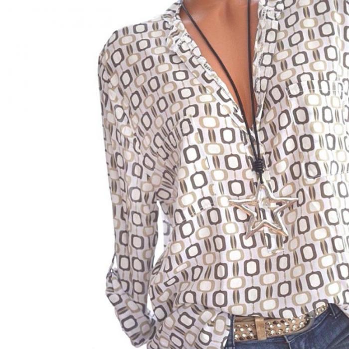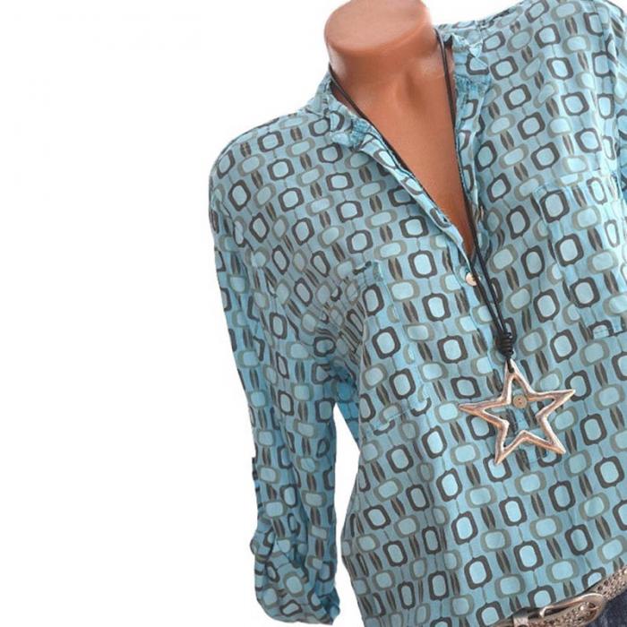 Informelles gemustertes Hemd mit langen Ärmeln, V-Ausschnitt.