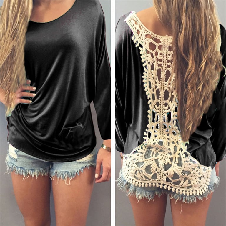 Damenoberteil mit langen Ärmeln und Spitzenrücken