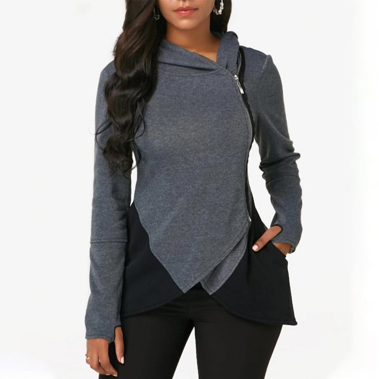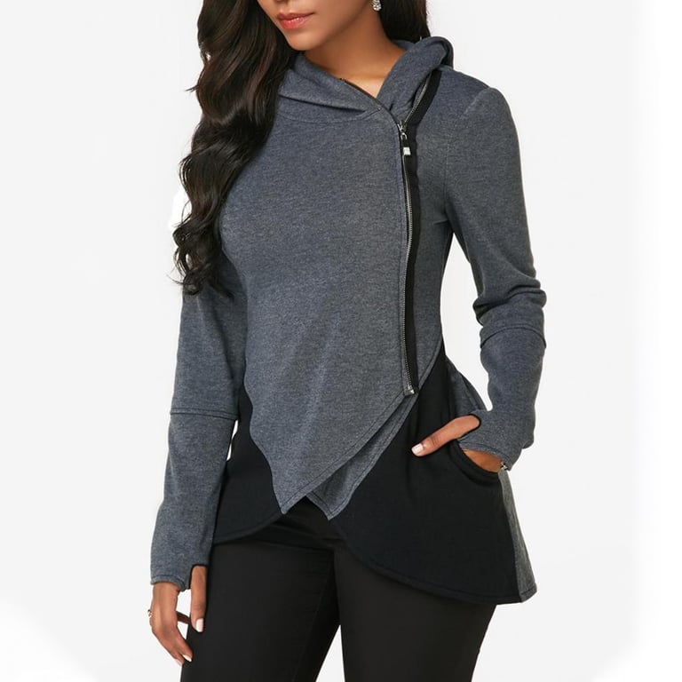 Eleganter Hoodie mit schrägem Reißverschluss und asymmetrischem Schnitt.