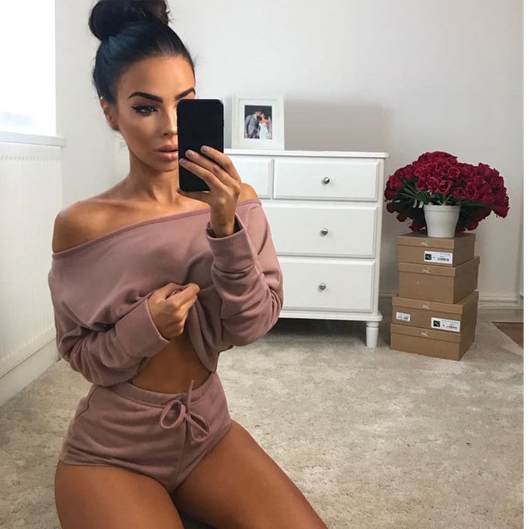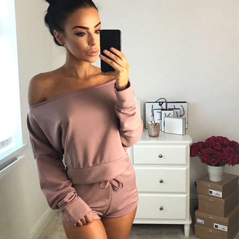 Damen-Pyjama-Set bestehend aus T-Shirt und Shorts. Das T-Shirt hat lange Ärmel und einen fallenden Schulterbereich, die Shorts haben einen Gummizug am Bund. In zwei Farben erhältlich.