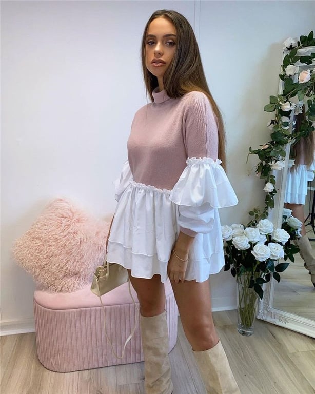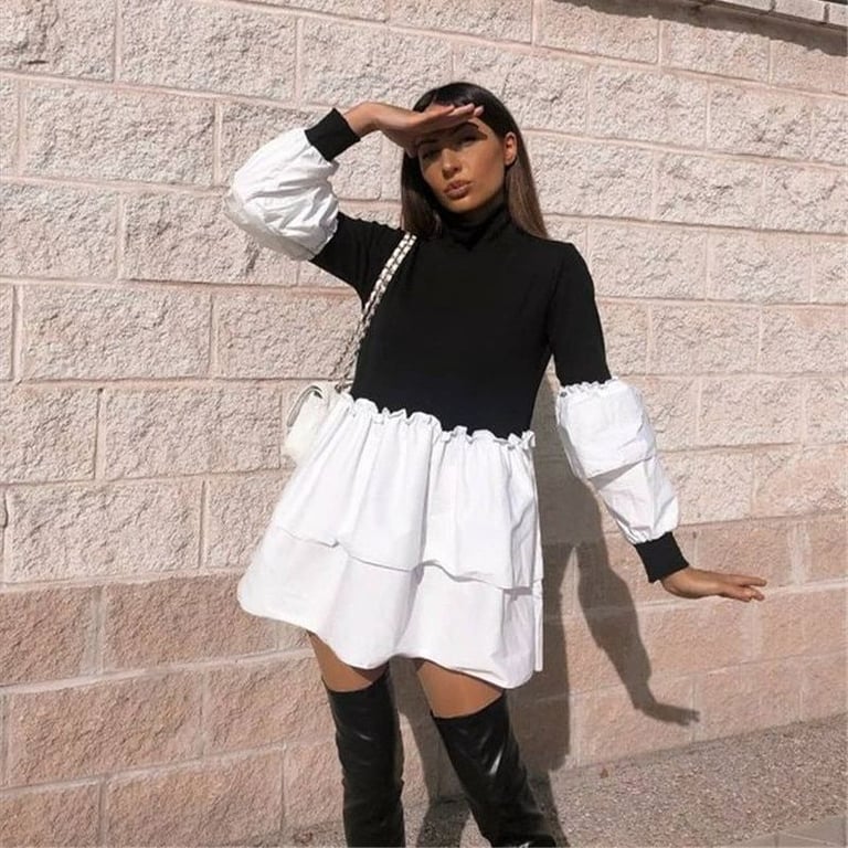 • Tags: Rüschendress, Kleid mit Rüschen, Langarmkleid, Kleid mit Rollkragen, Rüschendress, kurzes Kleid, stylisches Kleid für Frauen