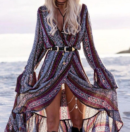 Dunkelblauer gemusterter langer Damen-Strandüberwurf