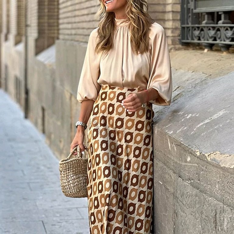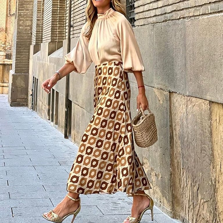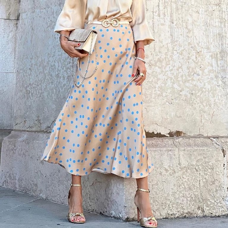 Luxuriöses Satin-Kleid, das den Eindruck erweckt, dass Sie eine Bluse und einen Rock tragen.