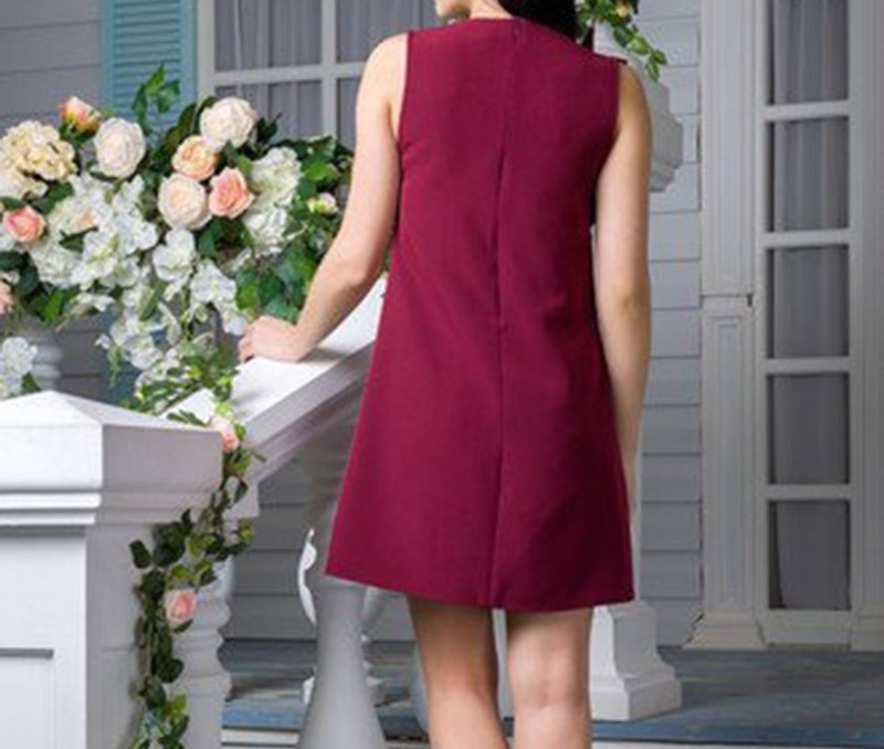 Damenkurzes ärmelloses Kleid mit interessanter Applikation.