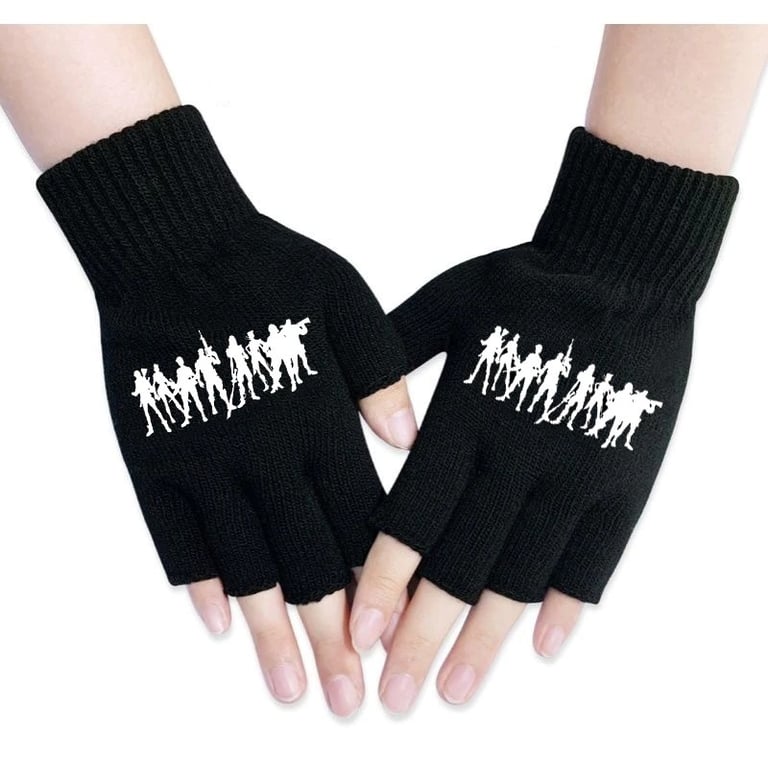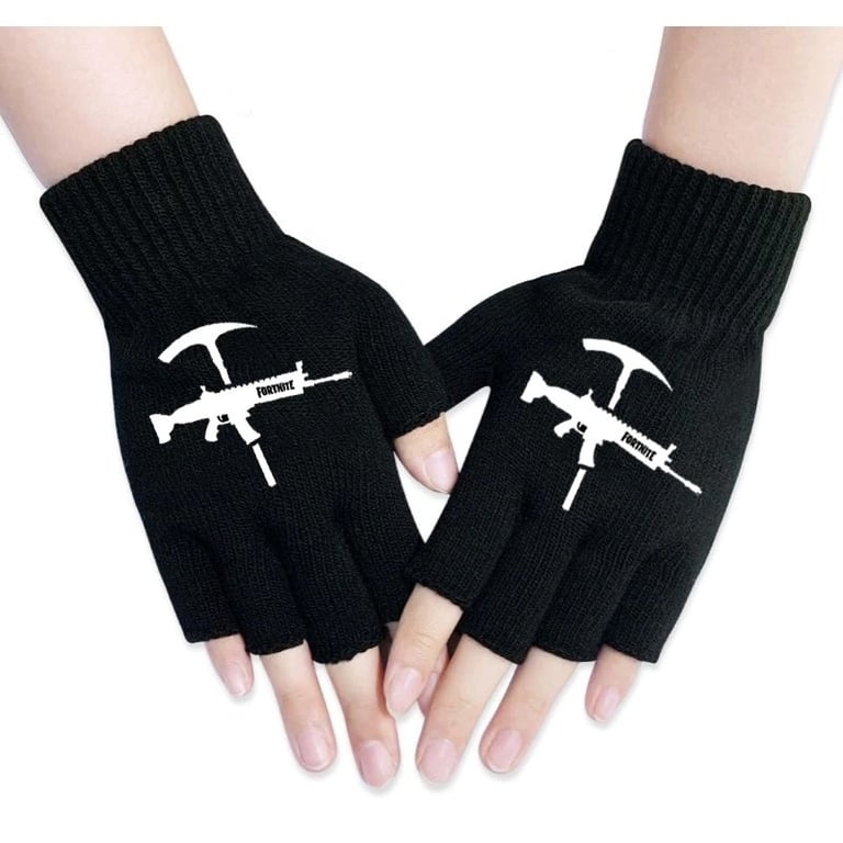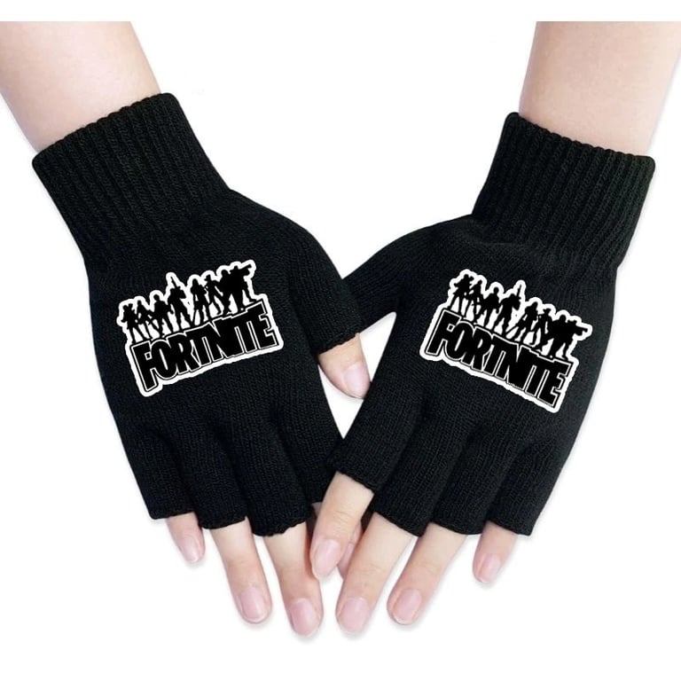 Einfache fingerlose Handschuhe mit dem Druck des beliebten Videospiels Fortnite.