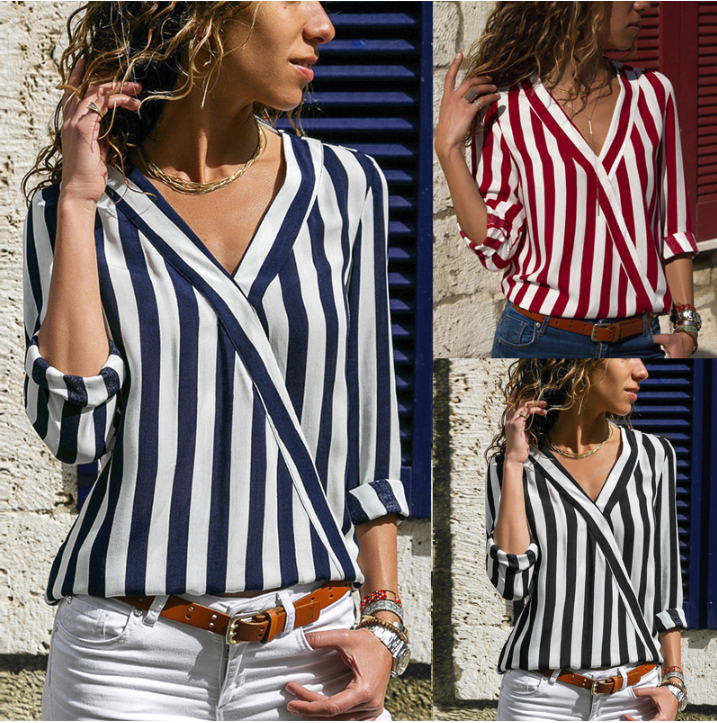 Gestreifte leichte luftige Damenbluse in mehreren Varianten