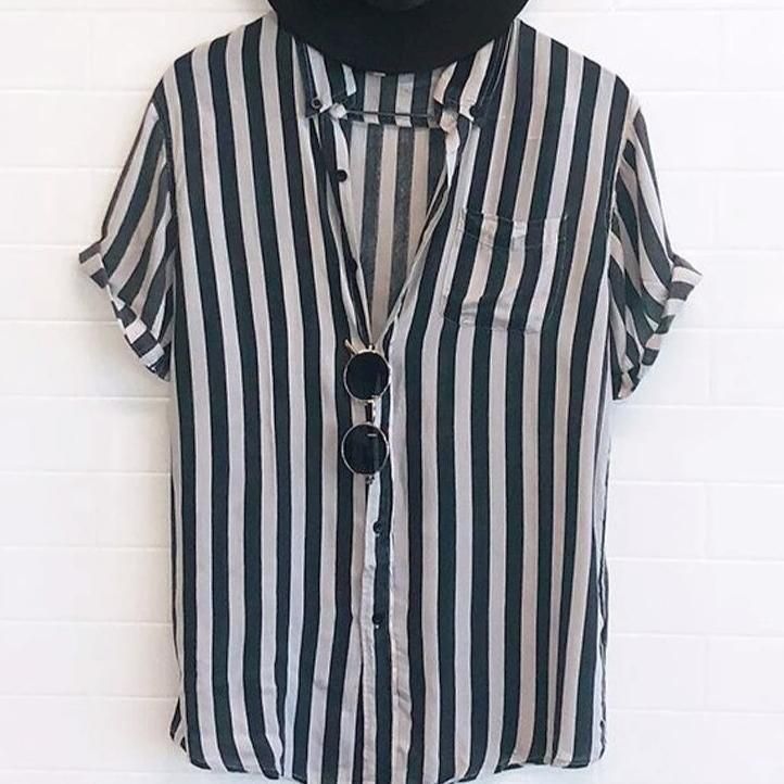 Gestreiftes T-Shirt mit kurzen Ärmeln.