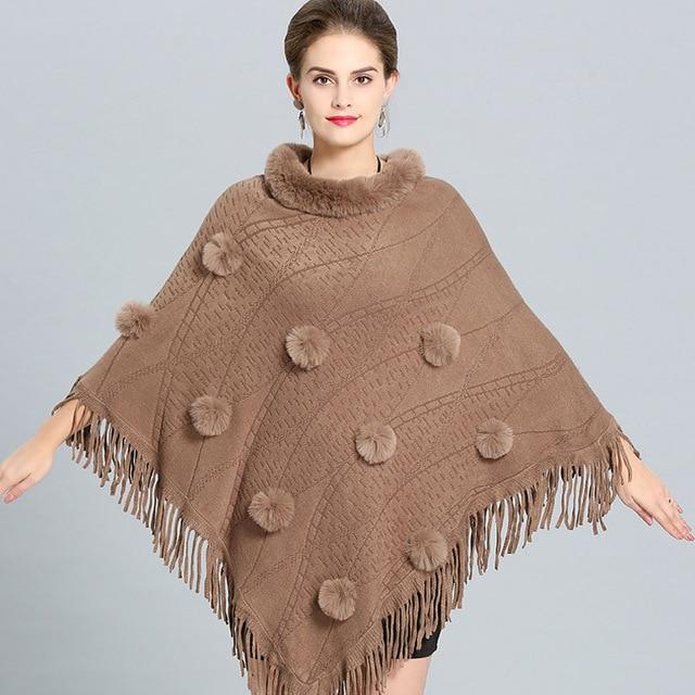Damen-Poncho mit Quasten in mehreren Farben zur Auswahl.