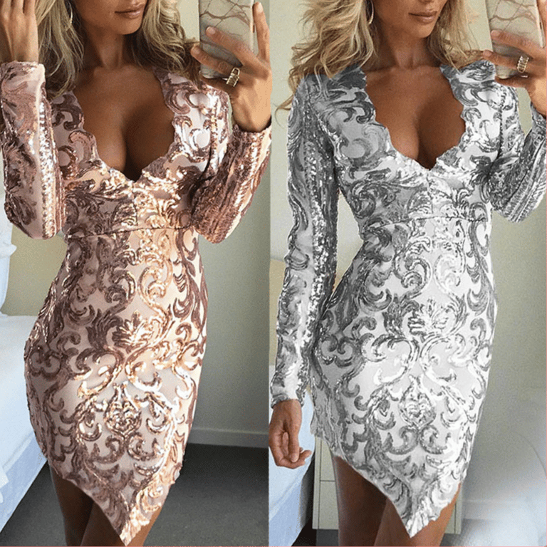 Glitzernde schöne Abendkleider mit Ausschnitt