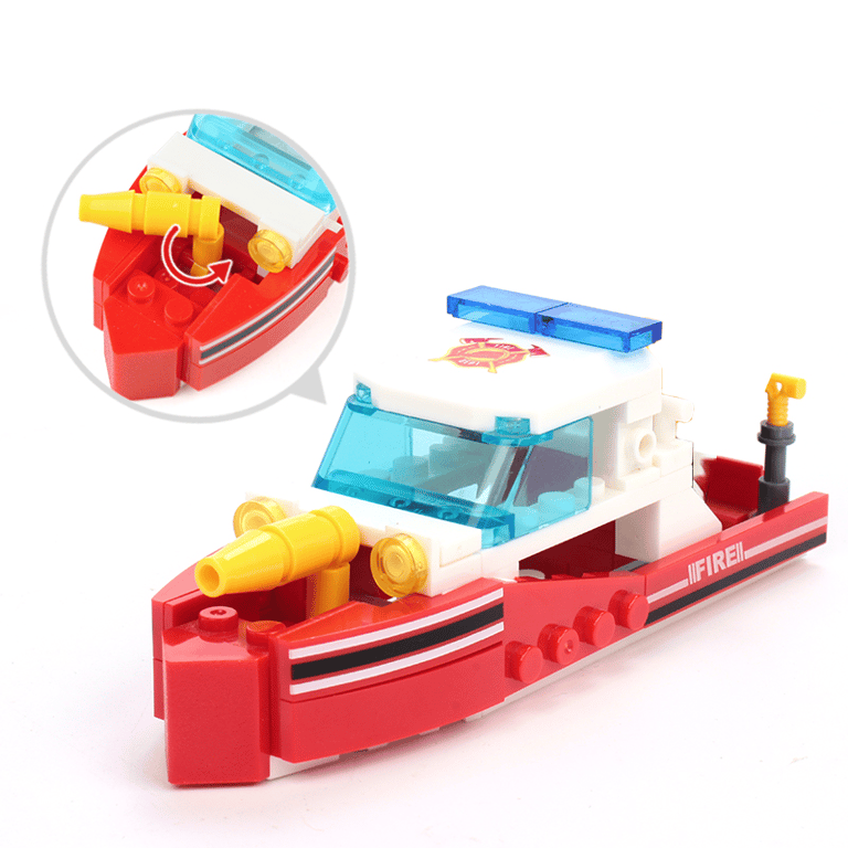 Großes Set mit 348 Teilen, aus denen Sie einen Hubschrauber, ein Boot oder ein Feuerwehrauto bauen können.