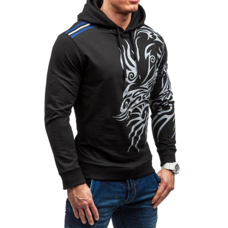 Herren Kapuzenpullover. Kordelzug zur Regulierung der Kapuze. Farbiger Streifen an der Schulter. Druck auf der Vorderseite. Erhältlich in drei Farbvarianten.