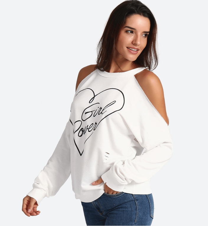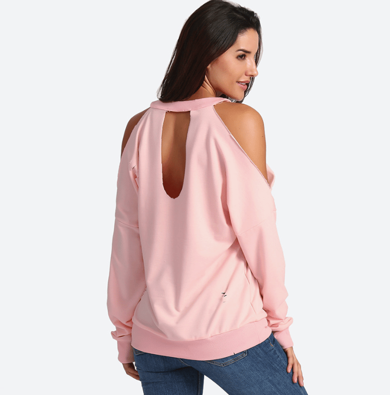 Interessanter origineller warmer Damenpullover mit Ausschnitten an den Schultern.