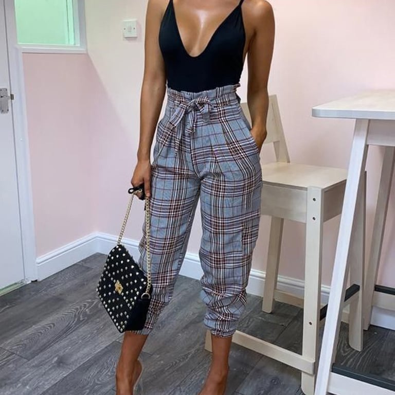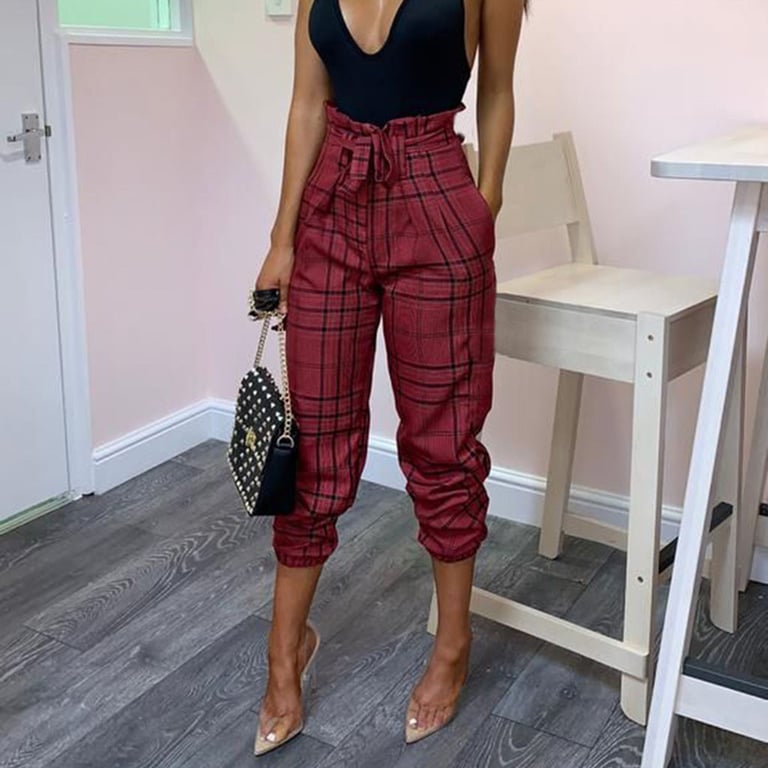 Kariert kürzere Freizeit-Damenhose - weinrot