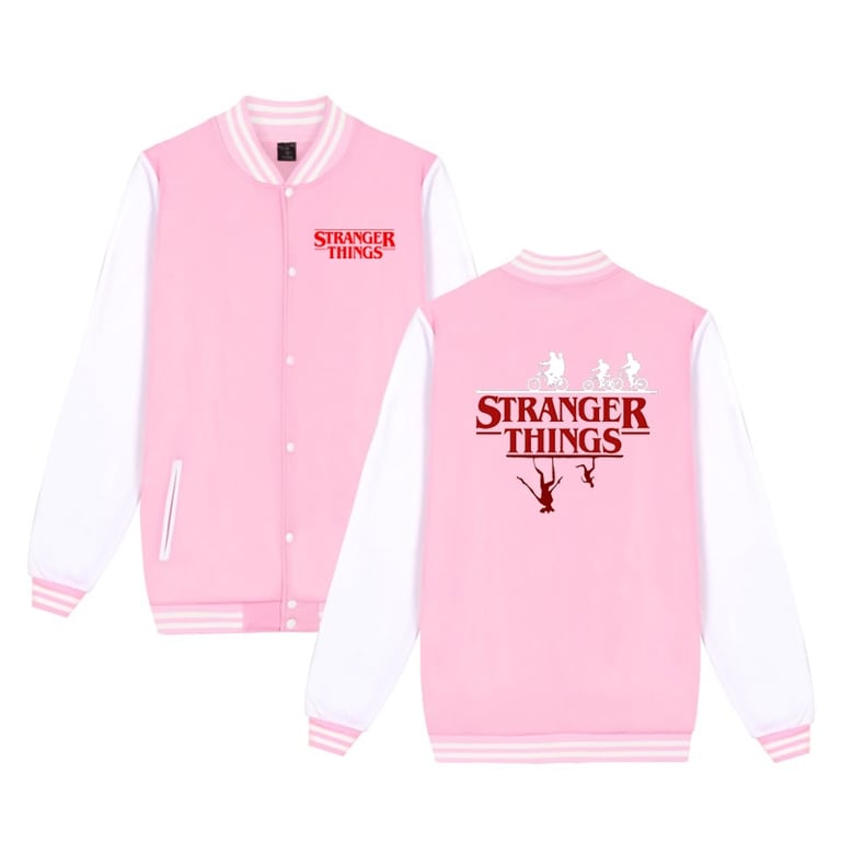 Kinder Baseball Hoodie mit Stranger Things Druck – rosa