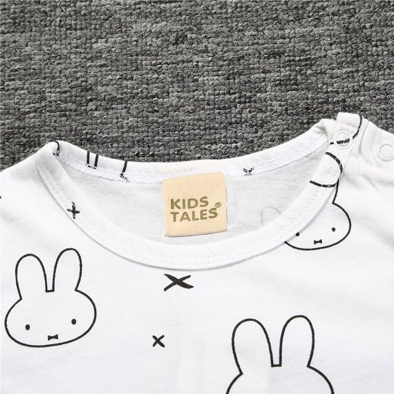 Kinderoverall mit kurzen Ärmeln. Druckknopfverschluss. Mit Druck von Hasen. In mehreren Varianten erhältlich.