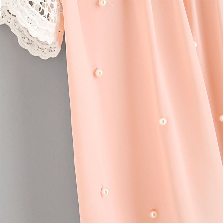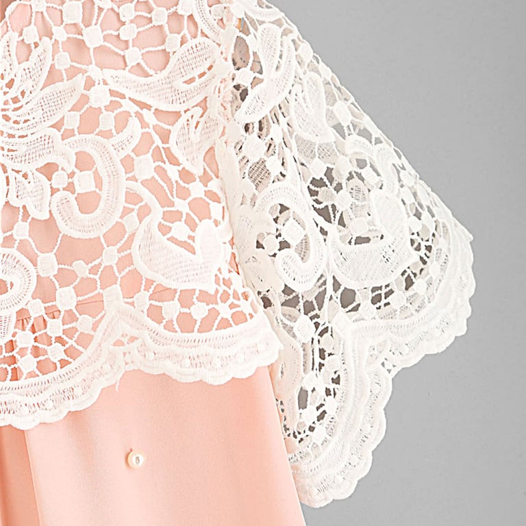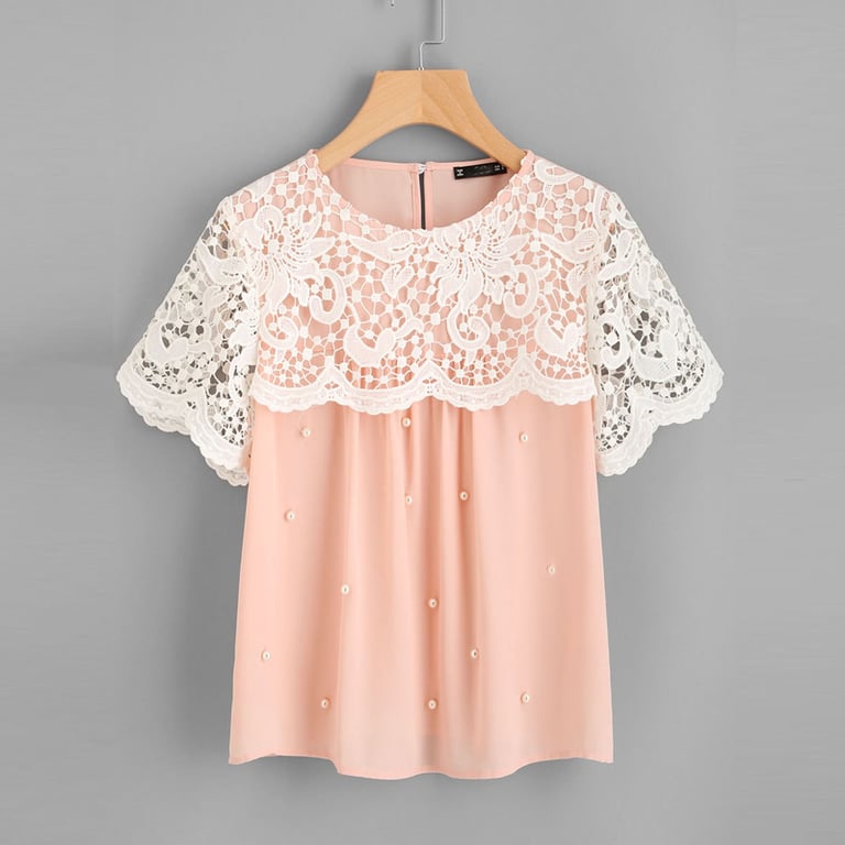 Lachsfarbene, verzierte lässige Damenbluse mit Spitze