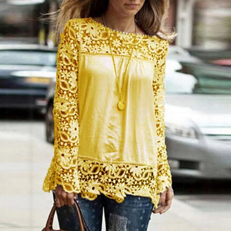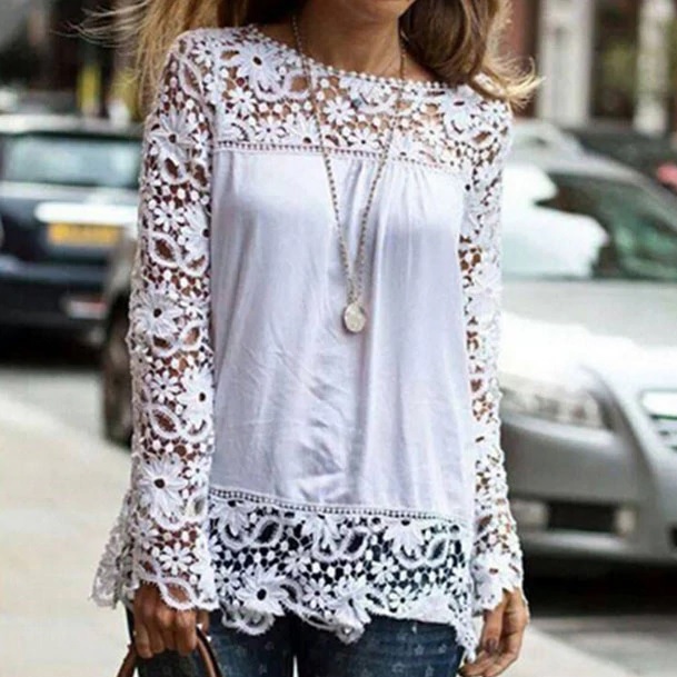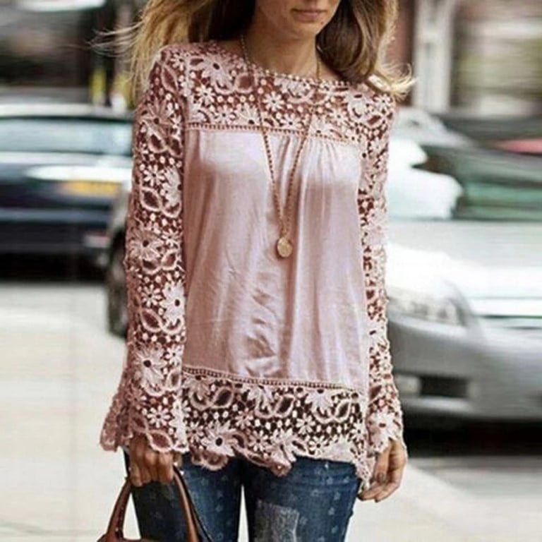 Damen lockere Bluse, eleganter Schnitt dank schöner Spitze.