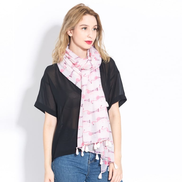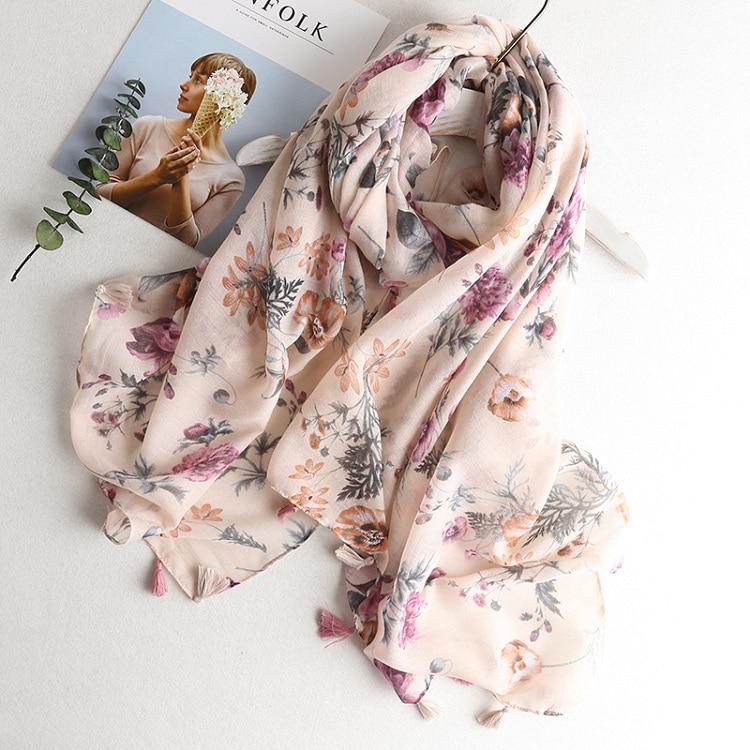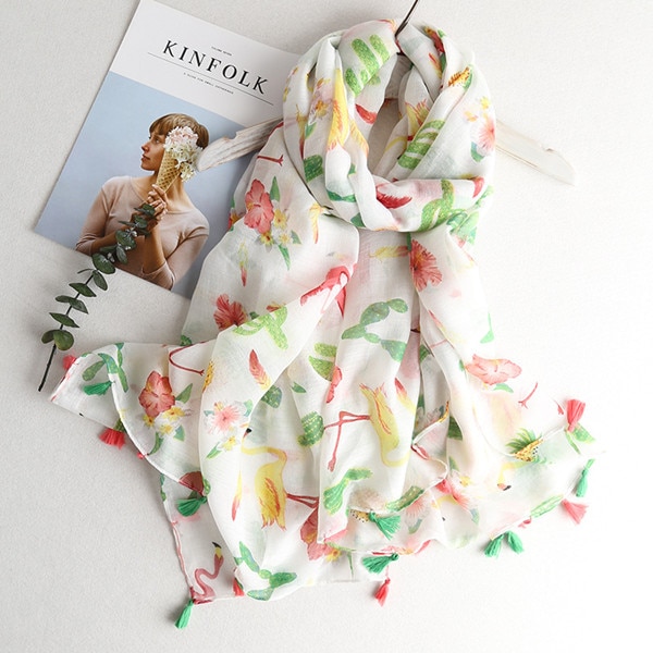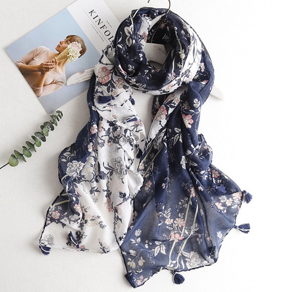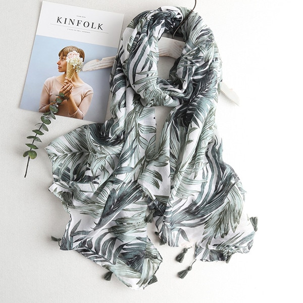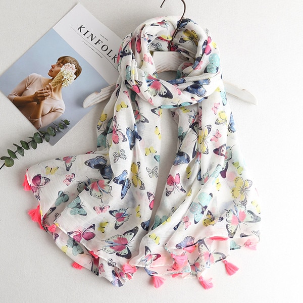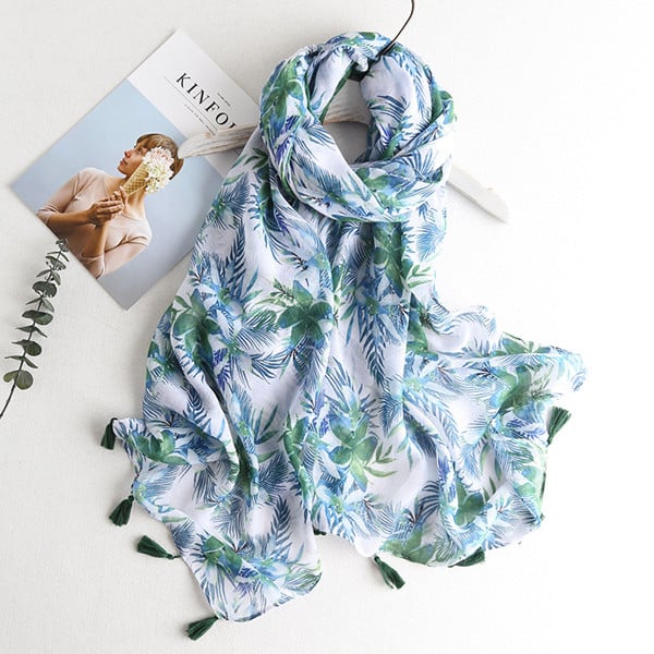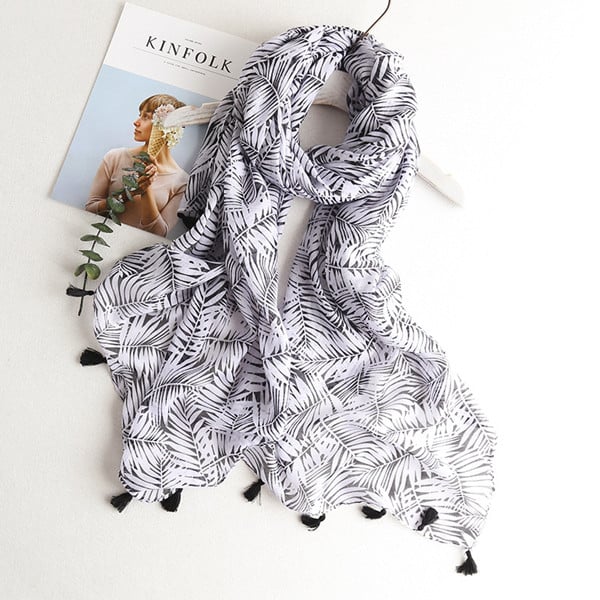 Eleganter Schal mit verschiedenen Motiven, der Ihr Gesicht zum Strahlen bringt. Dank des leichten Materials können Sie den Schal auch im Sommer als Tuch verwenden.