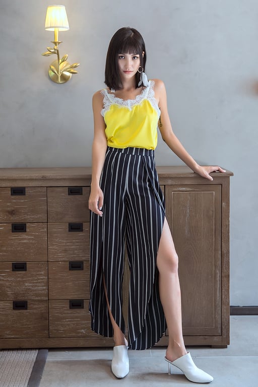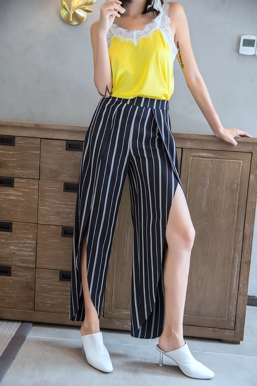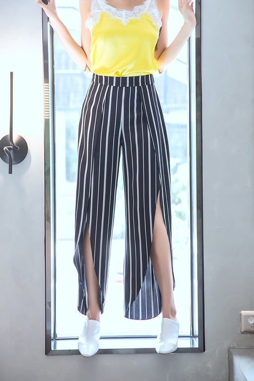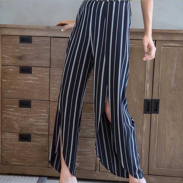 Lockere gestreifte Damenhose mit Schlitzen.