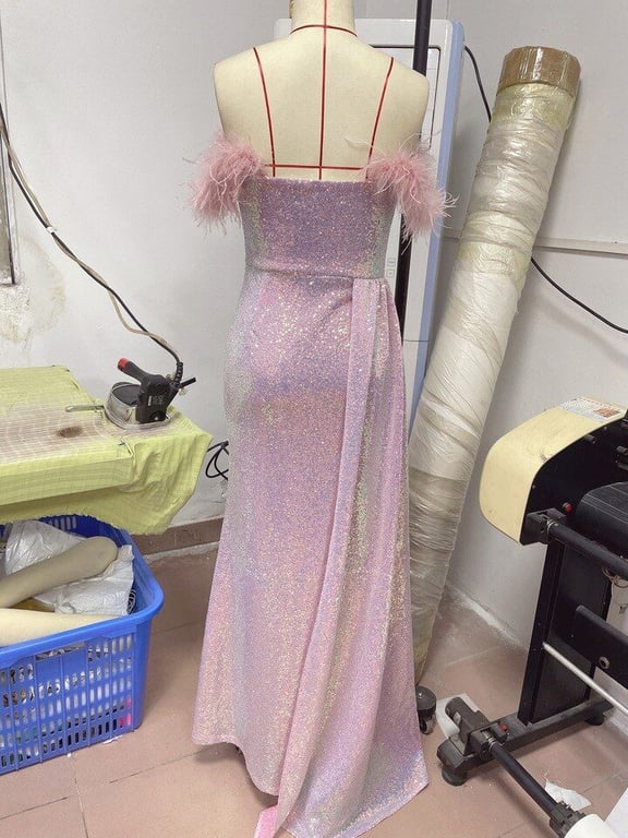 Luxuriöses glitzerndes Kleid mit Fransen und hohem Schlitz Brenda