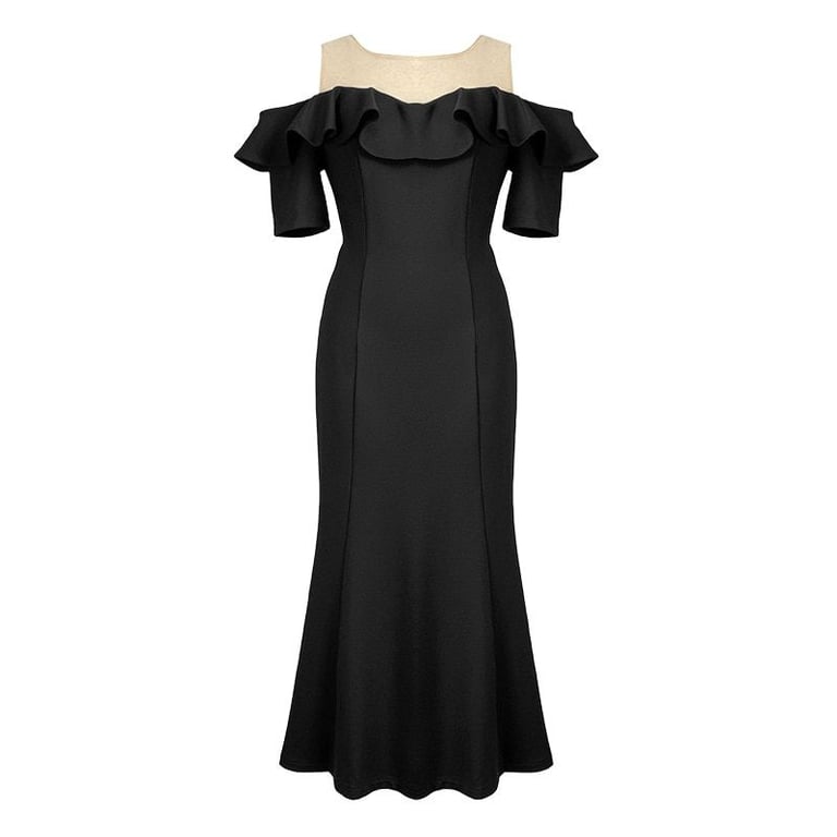Luxuriöses schwarzes minimalistisches Kleid mit herabfallenden Ärmeln Ester