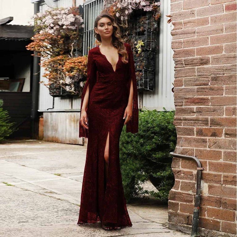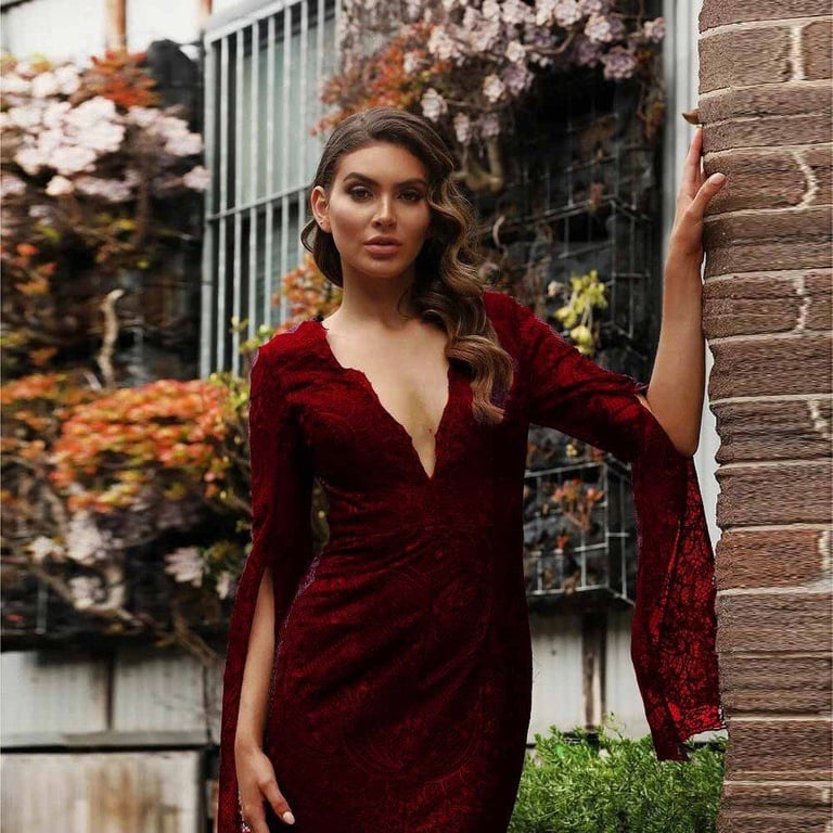 Luxuriöses Spitzenkleid mit ausgestellten Ärmeln Evalyn